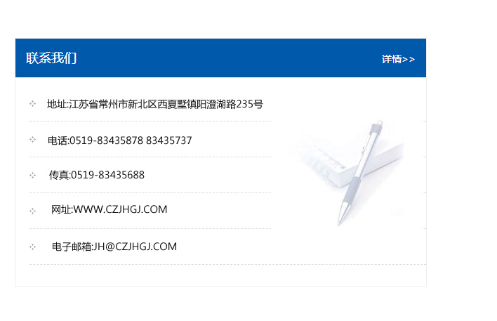 地址:常州市新北區友邦商務大廈1幢16、17層  電話:0519-85101652  傳真:0519-85112595  郵編:213022  網址:www.tiancandj_com.tjtsfnt.com  郵箱:xiajifengaa@163.com